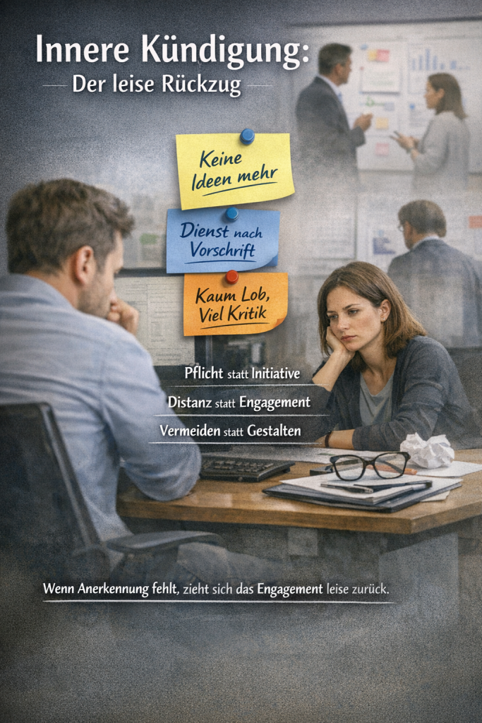 Wenn Beziehung fehlt, wenn Anerkennung ausbleibt, wenn Führung nicht als Orientierung erlebt wird, entsteht Distanz. Leise. Schritt für Schritt.