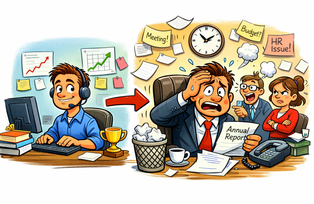 Die bisherige Stärke (Fachwissen) verliert an Bedeutung. Die neue Stärke (Führung) ist oft unscharf, schwer messbar und anfangs ungewohnt.